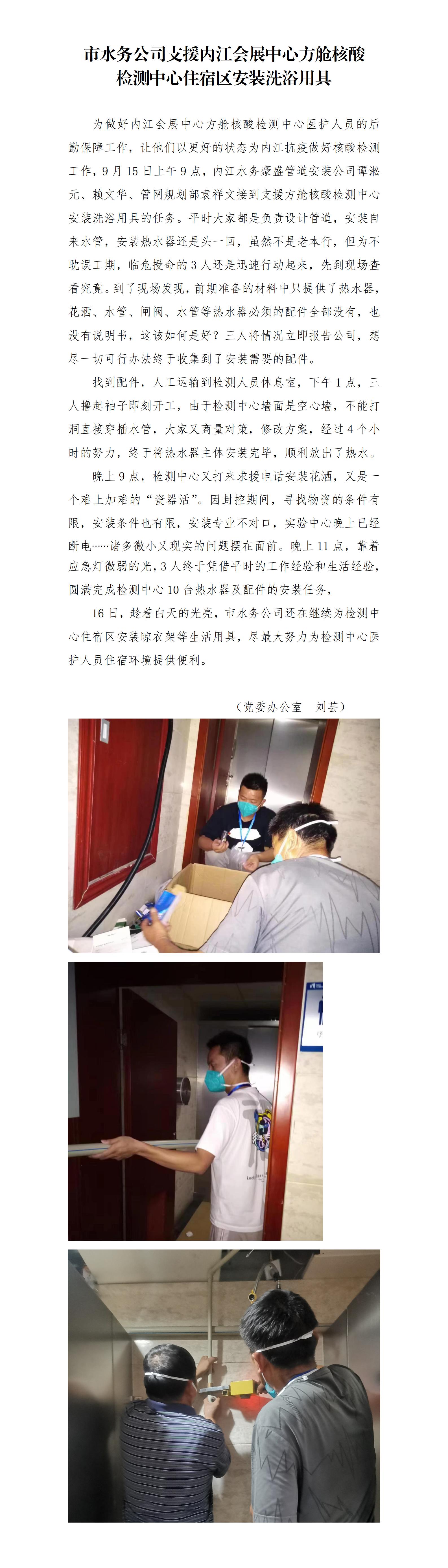 市水务公司支援内江会展中心方舱核酸 检测中心住宿区安装洗浴用具