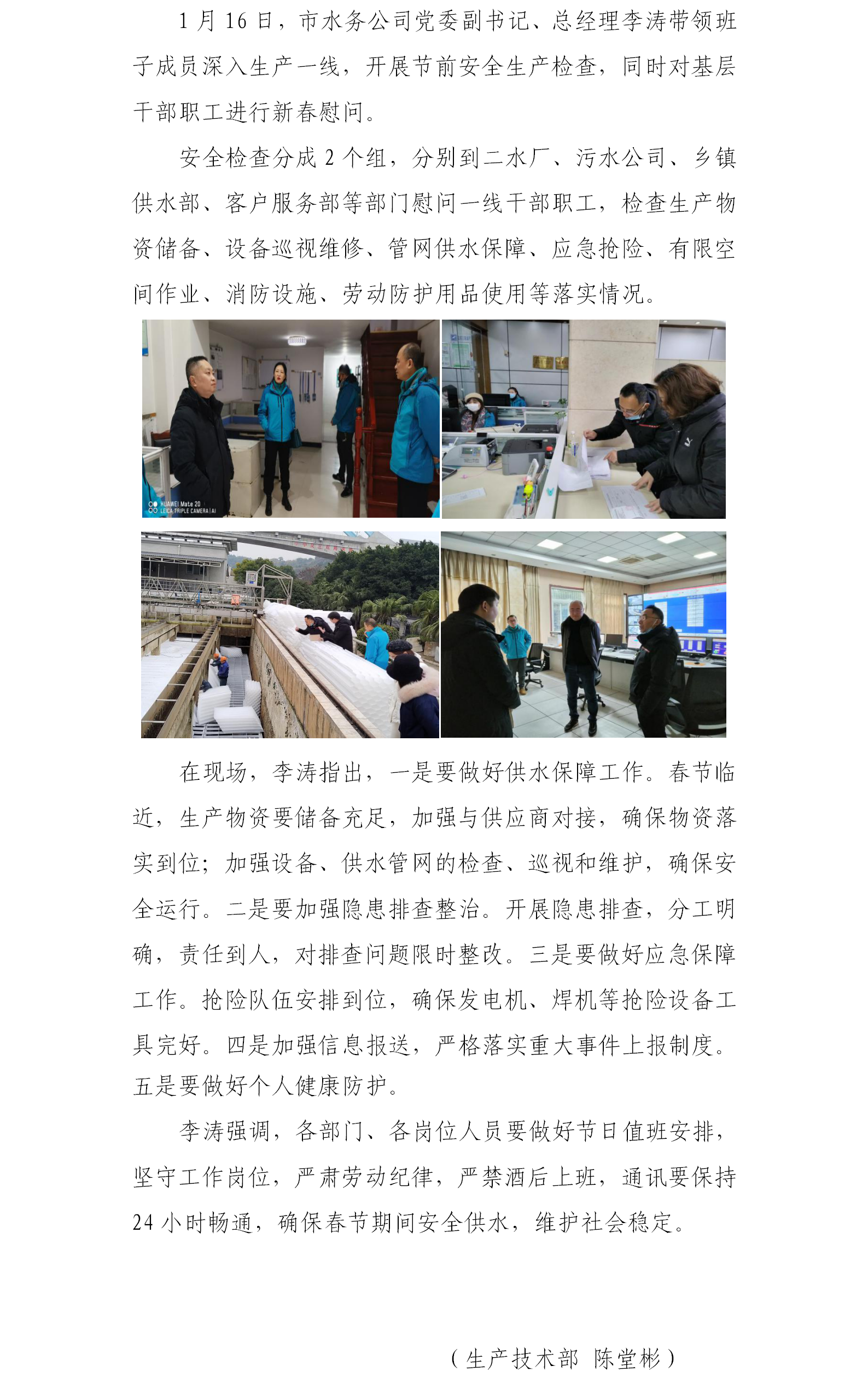 喜迎新春佳节 确保安全供水 ——市水务公司开展春节慰问检查