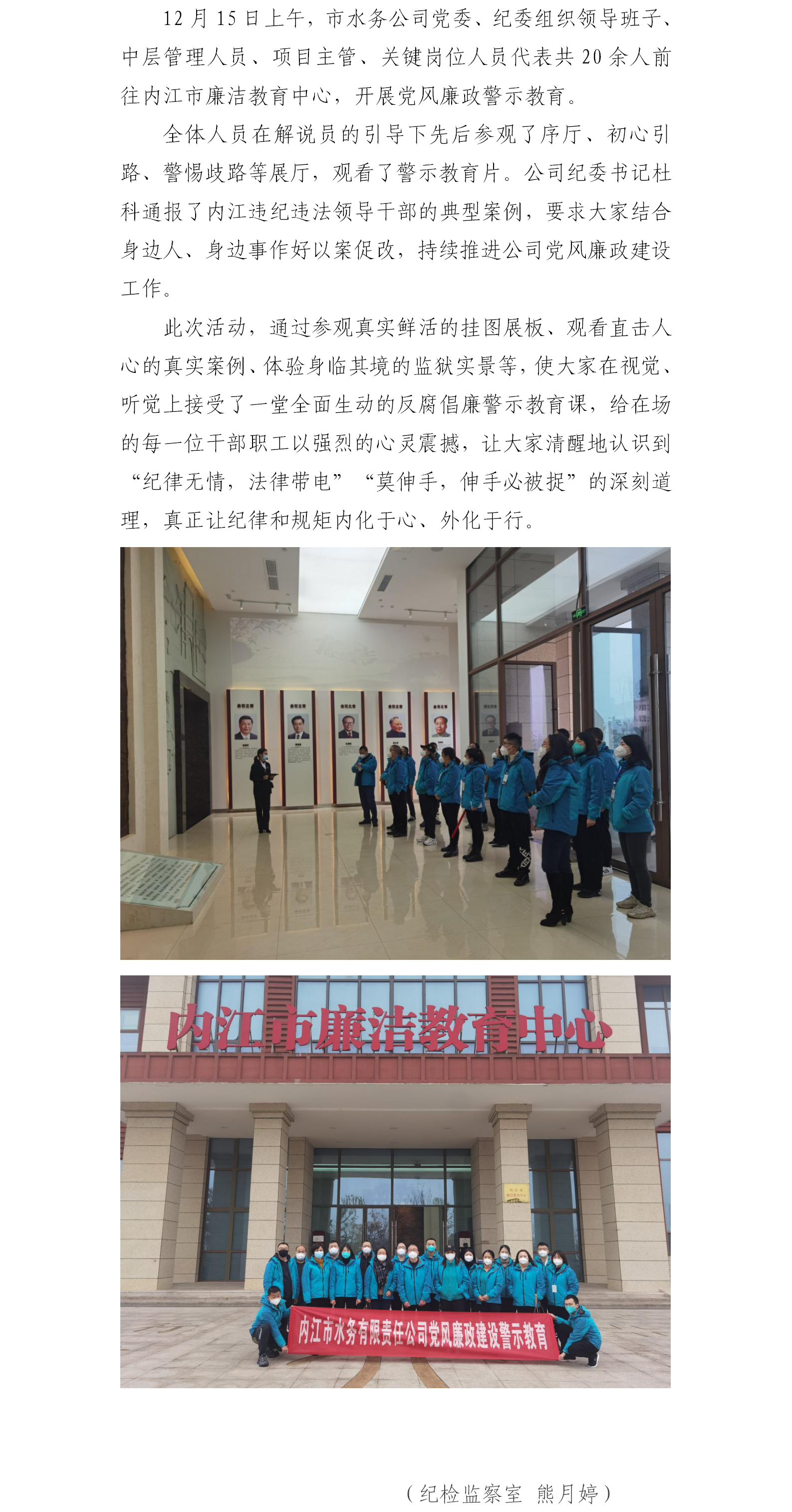 公司组织干部职工到内江市廉洁教育中心开展警示教育
