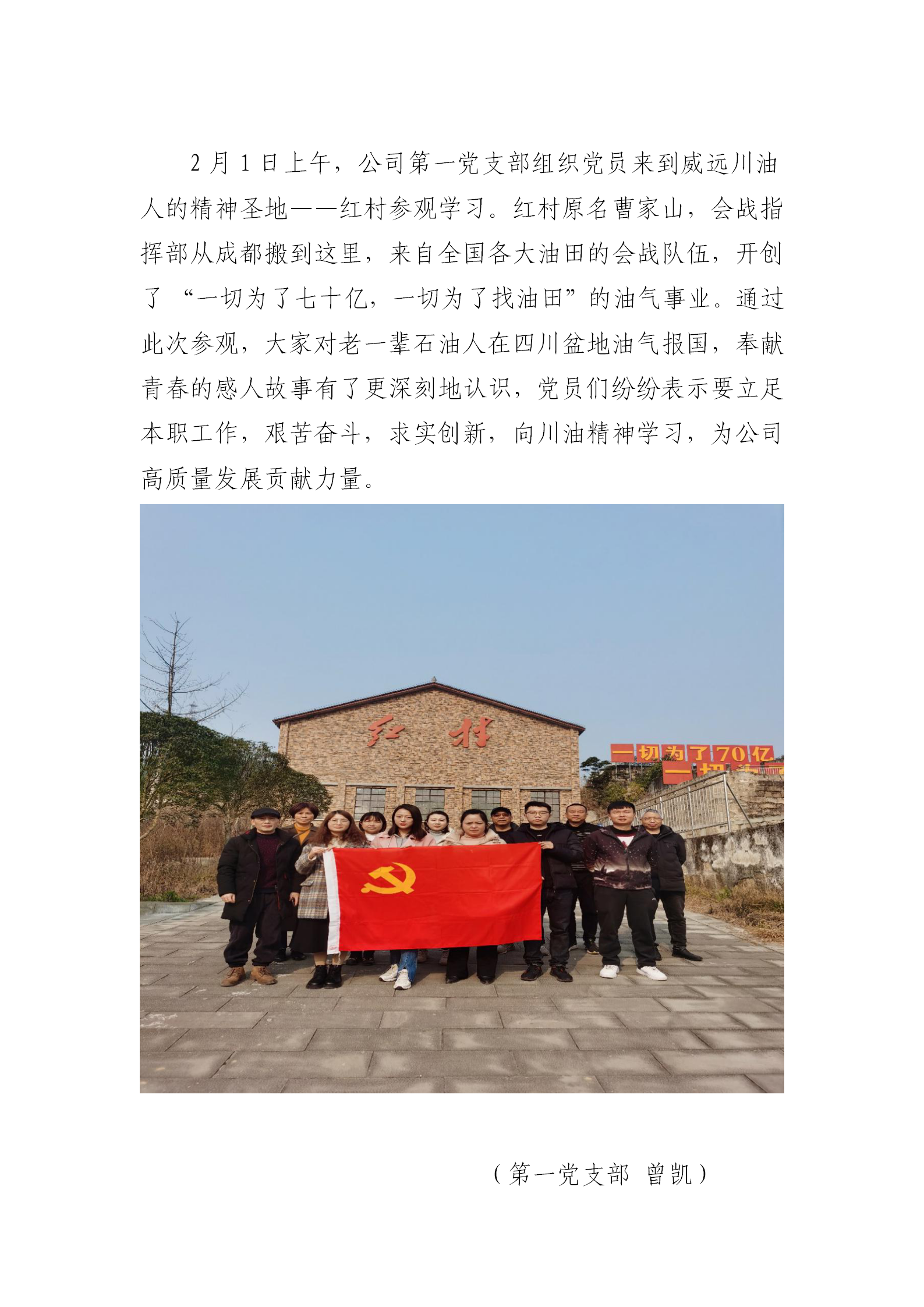 一支部开展参观四川石油大会战红村主题党日活动