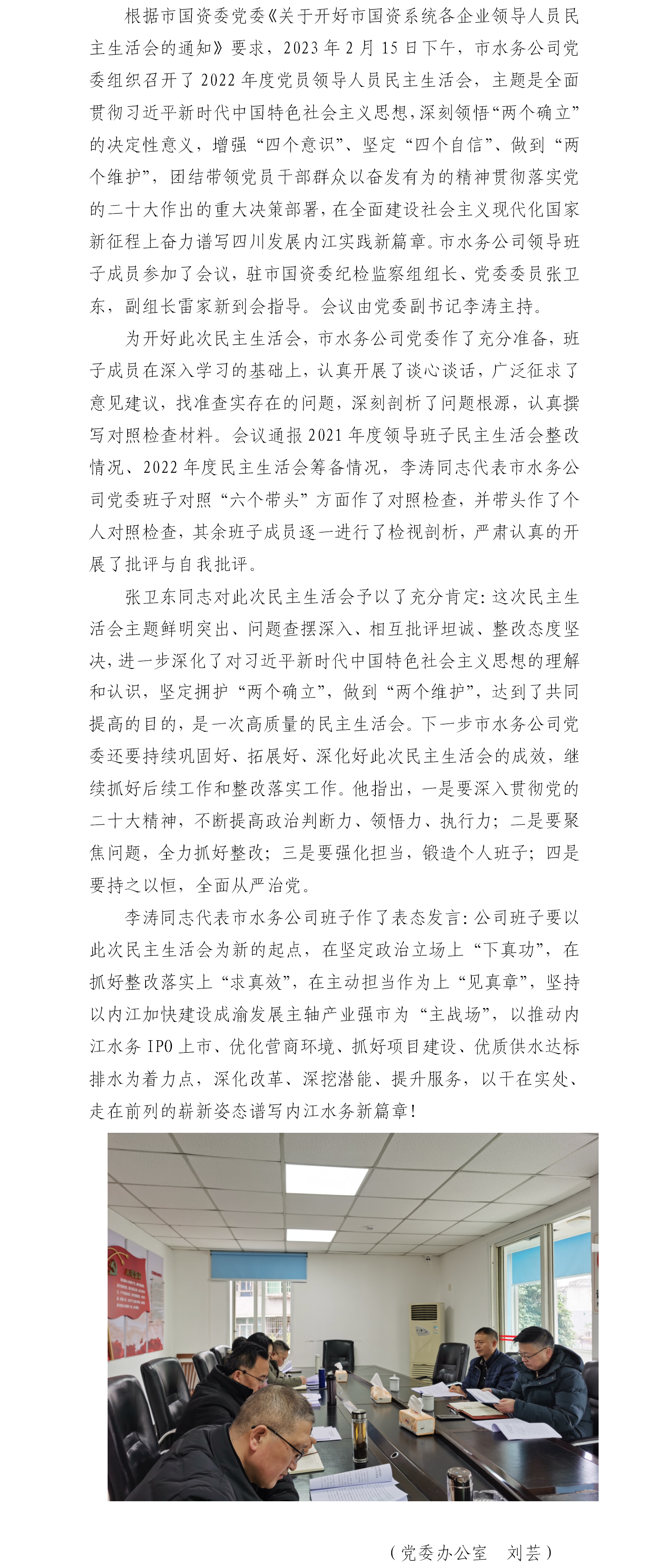 市水务公司党委召开2022年度党员领导人员民主生活会
