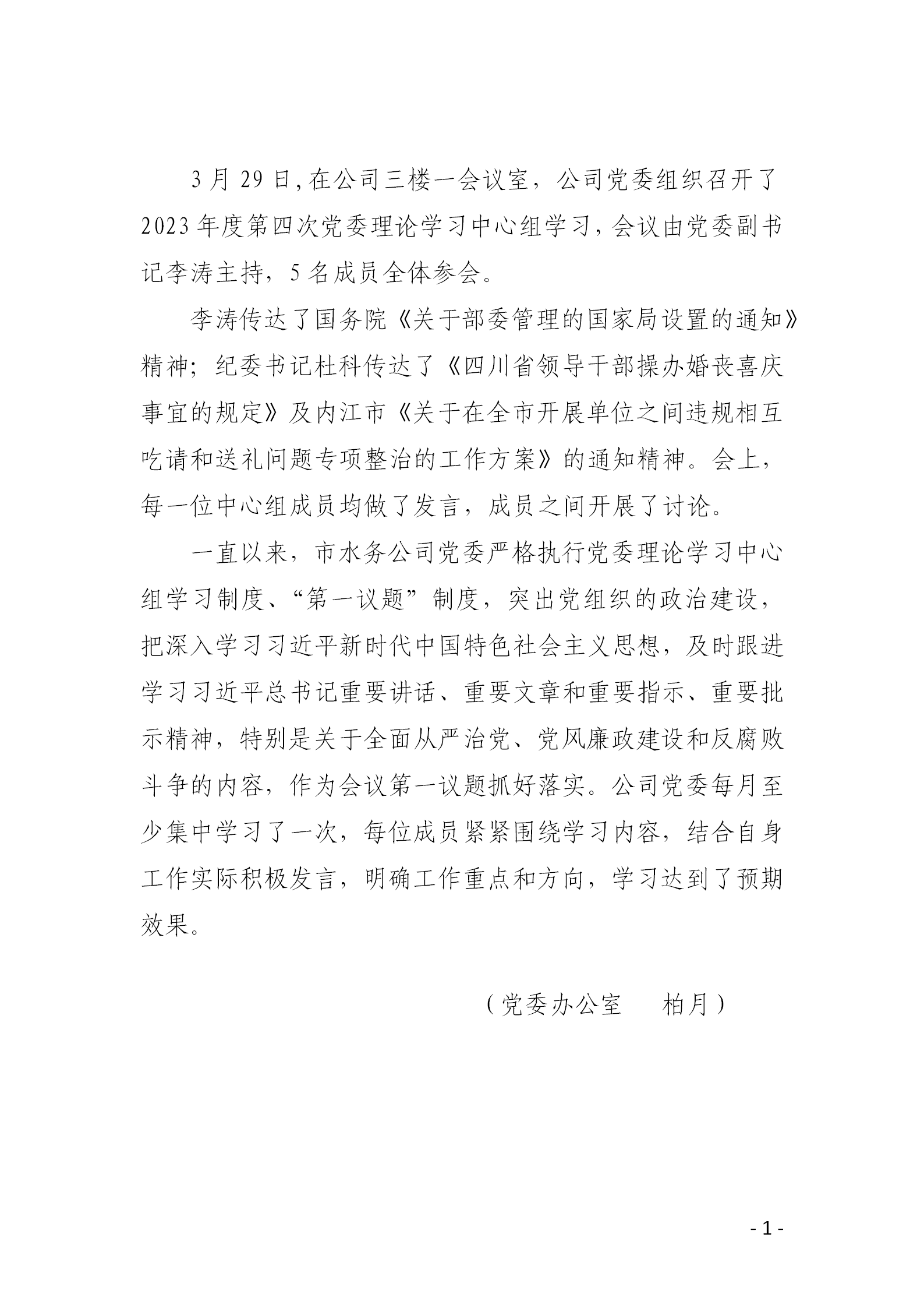 公司党委严格执行党委理论学习中心组学习制度、“第一议题”制度