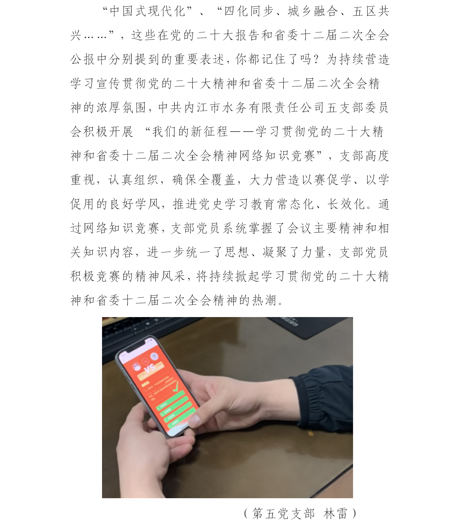 水务公司第五党支部积极参与“党的二十大精神及省委十二届二次全会精神网络知识竞赛”