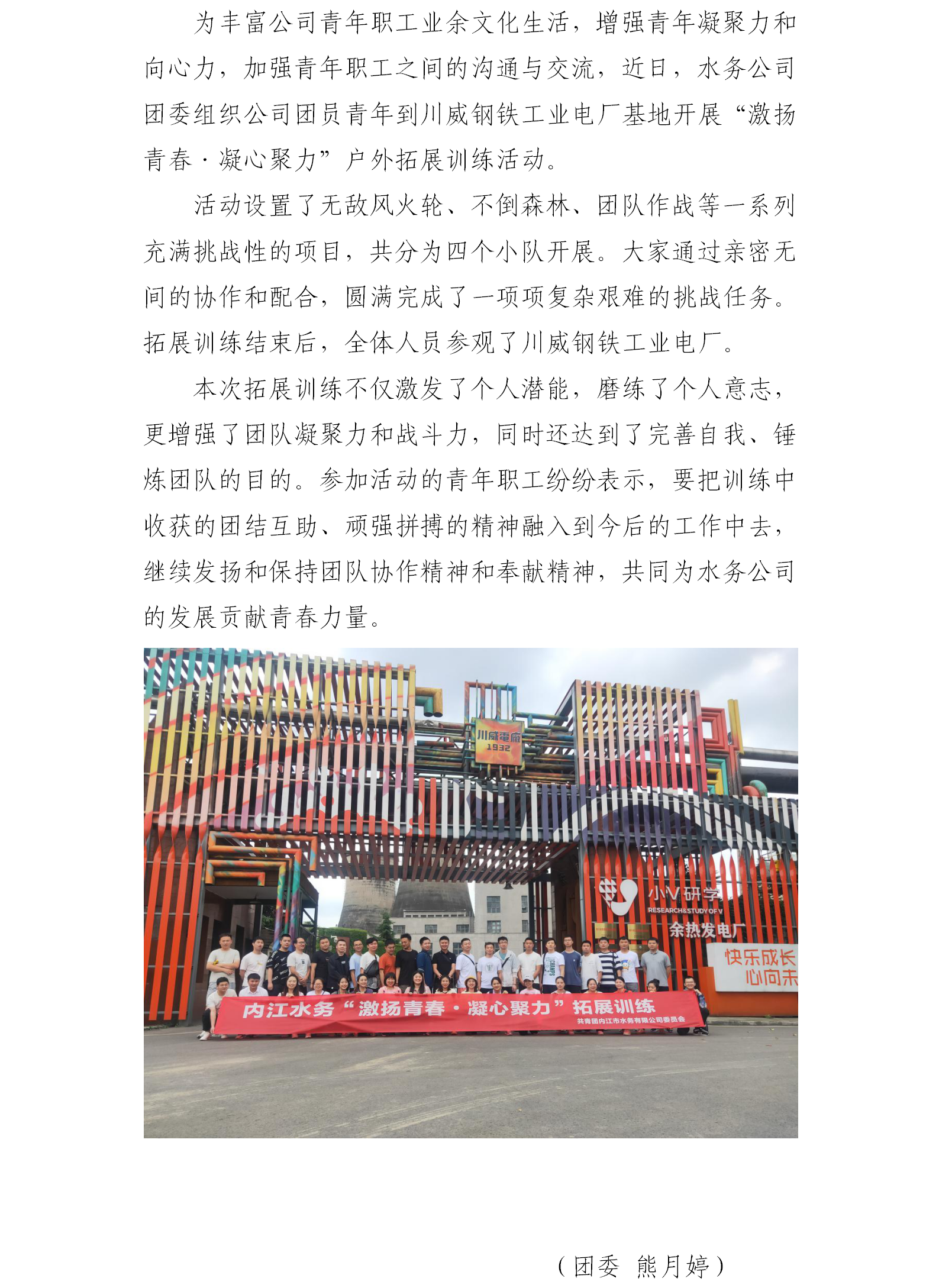 水务公司团委开展“激扬青春·凝心聚力”户外拓展训练活动