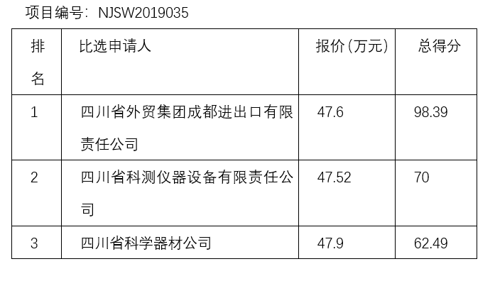 内江市污水处理有限责任公司化验室设备采购及安装工程中标结果公示