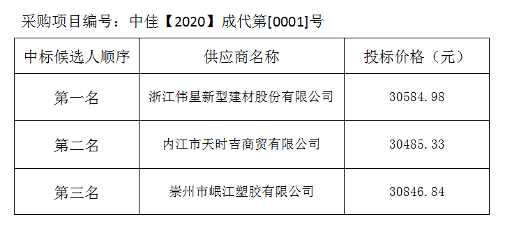 开云在线登录官网PE给水管及管件采购项目评标结果公示