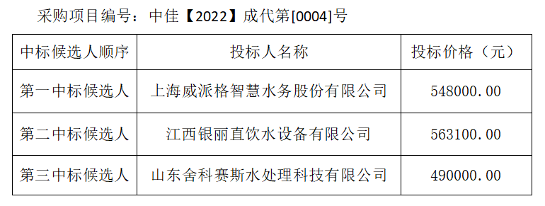 开云在线登录官网东湖御景小区集中式管道直饮水成套设备及附件采购(含安装)项目评标结果公示