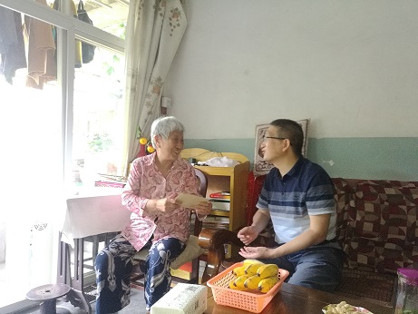 在于淑兰、黄仁宇、张树华、明素兰四位老党员干部居所,杜科同他们拉家常,关心老同志们身体状况及生活情况,倾听他们讲述创业故事,叮嘱老前辈在炎热夏季注意防暑降温,希望他们继续为公司发展建言献策,并衷心祝愿他们生活快乐、健康长寿。