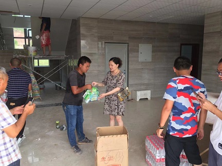 由公司党委副书记、副总经理、工会主席李涛,党委办副主任柏月、工会委员何涛带领的慰问组,先后到乡镇供水部、经开区污水处理公司、污水处理公司、二水厂、管网运行部、豪鹏二次供水公司、豪盛安装公司、第二污水处理厂项目部等部门,为奋斗在一线的职工送去了防暑降温药品和矿泉水。
