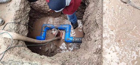11月29日,经开区污水处理厂工作人员在巡视中发现厂区内进出水管道疑似有渗水现象。公司工程管理部接到报修电话后,立即奔赴现场进行勘察,迅速对供水管道设施进行排查,确定是污水处理厂内DN110、DN90给水管道漏水,需立即修复。