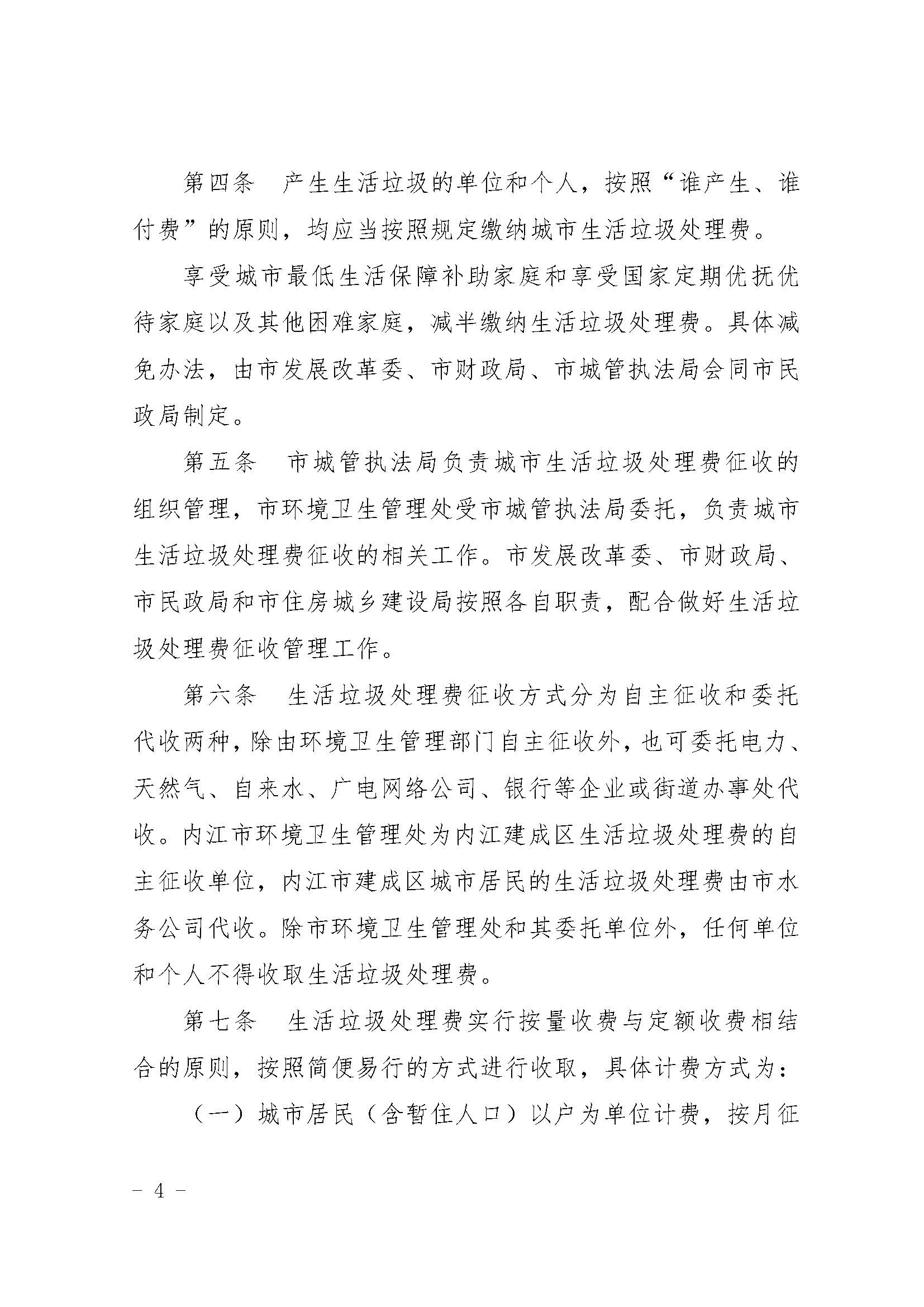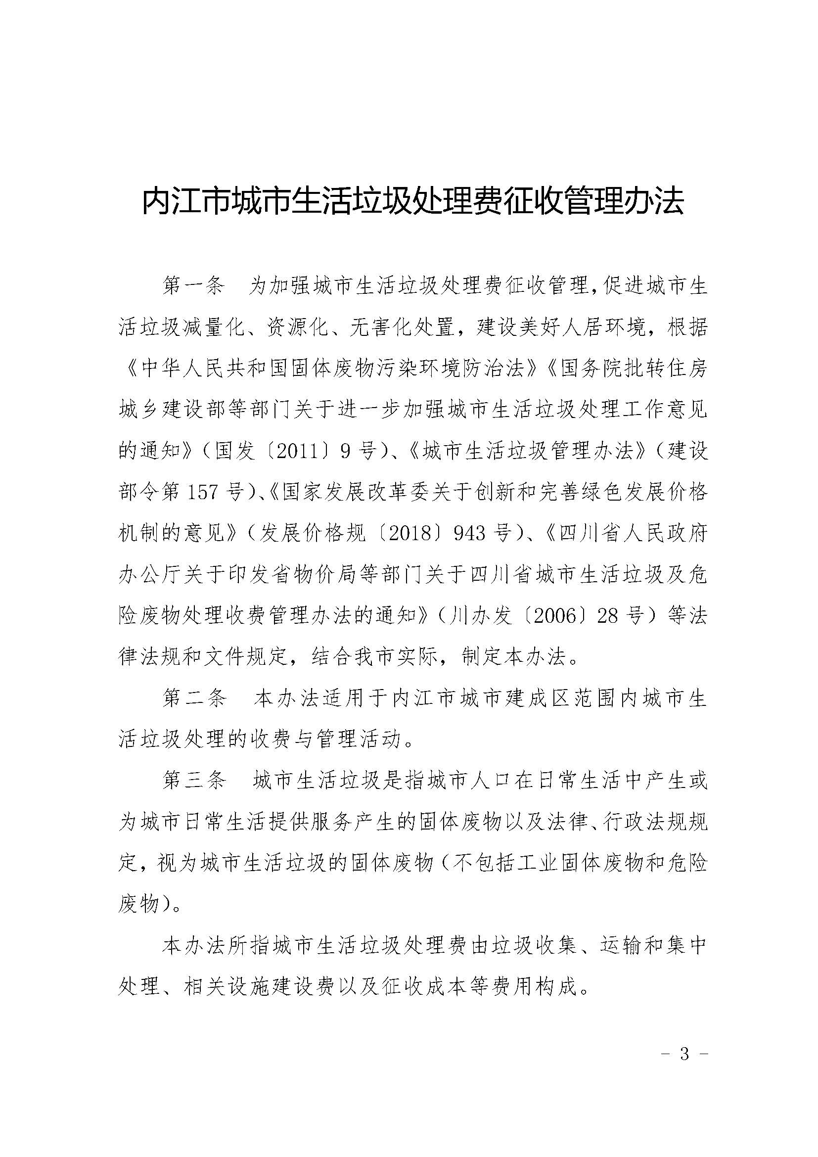 关于印发《内江市城市生活垃圾处理费征收管理办法》的通知