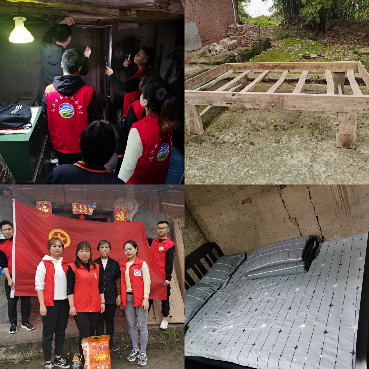 隆昌市圣灯镇大桥村困难群众陈辉容的房屋因是土胚房,屋内潮湿,家中床、衣柜等木制家具和房梁受白蚁啃噬严重。为弘扬雷锋精神,助力乡村振兴,3月16日,市水务公司团委组织团员青年开展志愿服务活动,为陈辉容购买了铁床、棉被、粮油等慰问品,改善居住条件。陈奶奶连忙道谢:“你们太好了,我的愿望就是想拥有一架铁床,白蚁就啃不动了,我也能睡得安心点,感谢你们,感谢组织”。