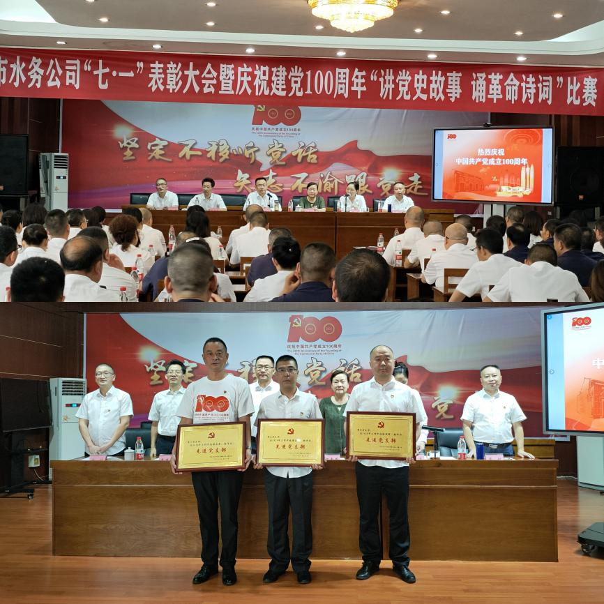 6月30日下午,在中国共产党成立100周年之际,为表彰先进,弘扬正气,树立典型,进一步激励各基层党组织和广大党员履职尽责,担当有为,推动企业持续向好发展。市水务公司党委举办“七一”表彰大会暨庆祝建党100周年“讲党史故事 诵革命诗词”比赛。市国资委调研员梁素蓉,内投集团党委委员、纪委书记曹德华出席会议,公司领导班子成员、各支部党员代表近132余人参加会议。会议由党委副书记、总经理李涛主持。