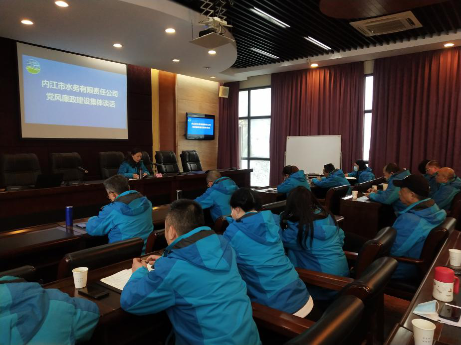 2021年12月29日,市水务公司党委对各部门负责人进行党风廉政集体谈话。党委副书记、总经理李涛代表公司党委提了四点要求:一是坚持和加强党的全面领导;二是加强和规范党内政治生活;三是全面推进党风廉政建设落实落地;四是健全防腐促廉长效机制。