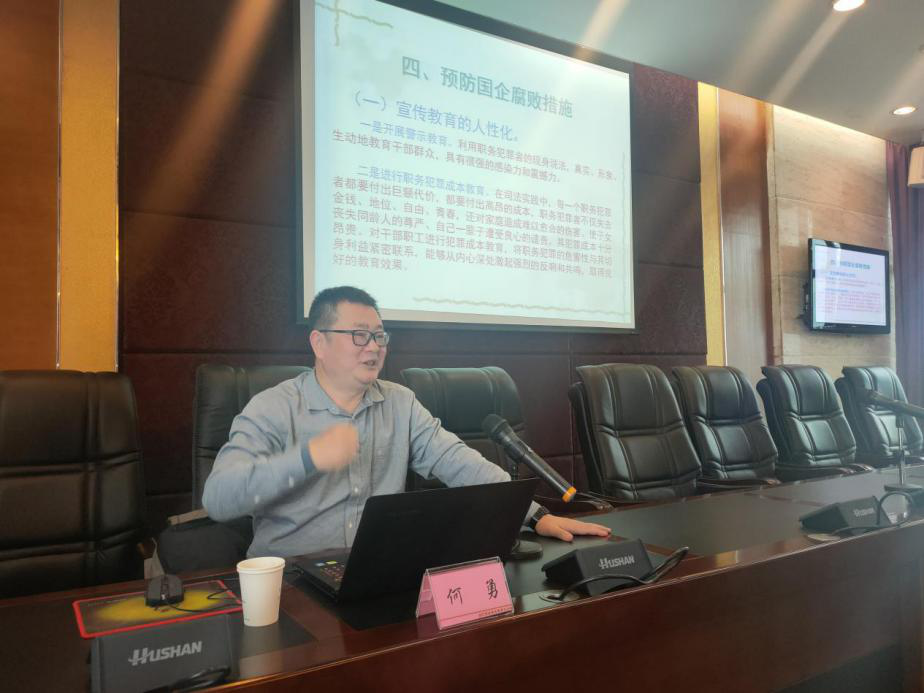 为进一步增强公司干部职工廉洁自律意识,提升拒腐防变能力,2021年12月29日,市水务公司纪委举办了党风廉政建设专题讲座,邀请市纪委监委驻卫健委纪检监察组组长何勇为干部职工上了一堂生动的廉洁教育课。公司中层及以上干部、项目主管、关键岗位人员代表共计47人参加,讲座由公司纪委书记、工会主席杜科主持。