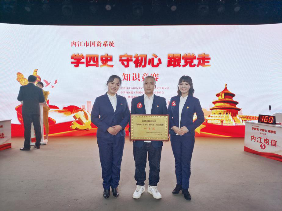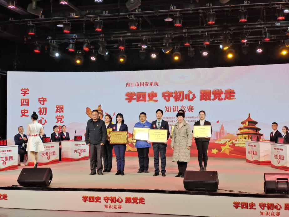2021年12月28日下午,由中共内江市国有资产监督管理委员会委员会主办,中共内江建工集团有限责任公司委员会承办的内江市国资系统“学四史 守初心 跟党走”知识竞赛在内江广播电视台演播大厅举行。来自市级各企业的8支队伍24名选手参赛,我司选派的刘梅、袁琳、熊瑞凯3名同志代表参加了此次竞赛。
