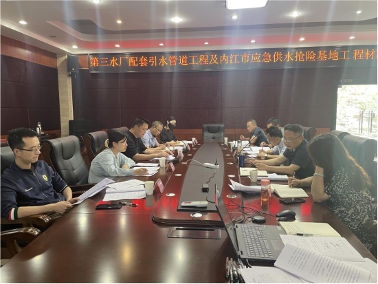 4月24日下午,公司常务副总经理唐贤彬在三楼一会议室主持召开会议,专题研究三水厂配套引水管道工程和应急抢险基地工程项目建设所需设备材料询价工作。市发改委、市财政局、市住建局、市国资委、内投集团和水务公司等询价工作组相关人员参加会议。