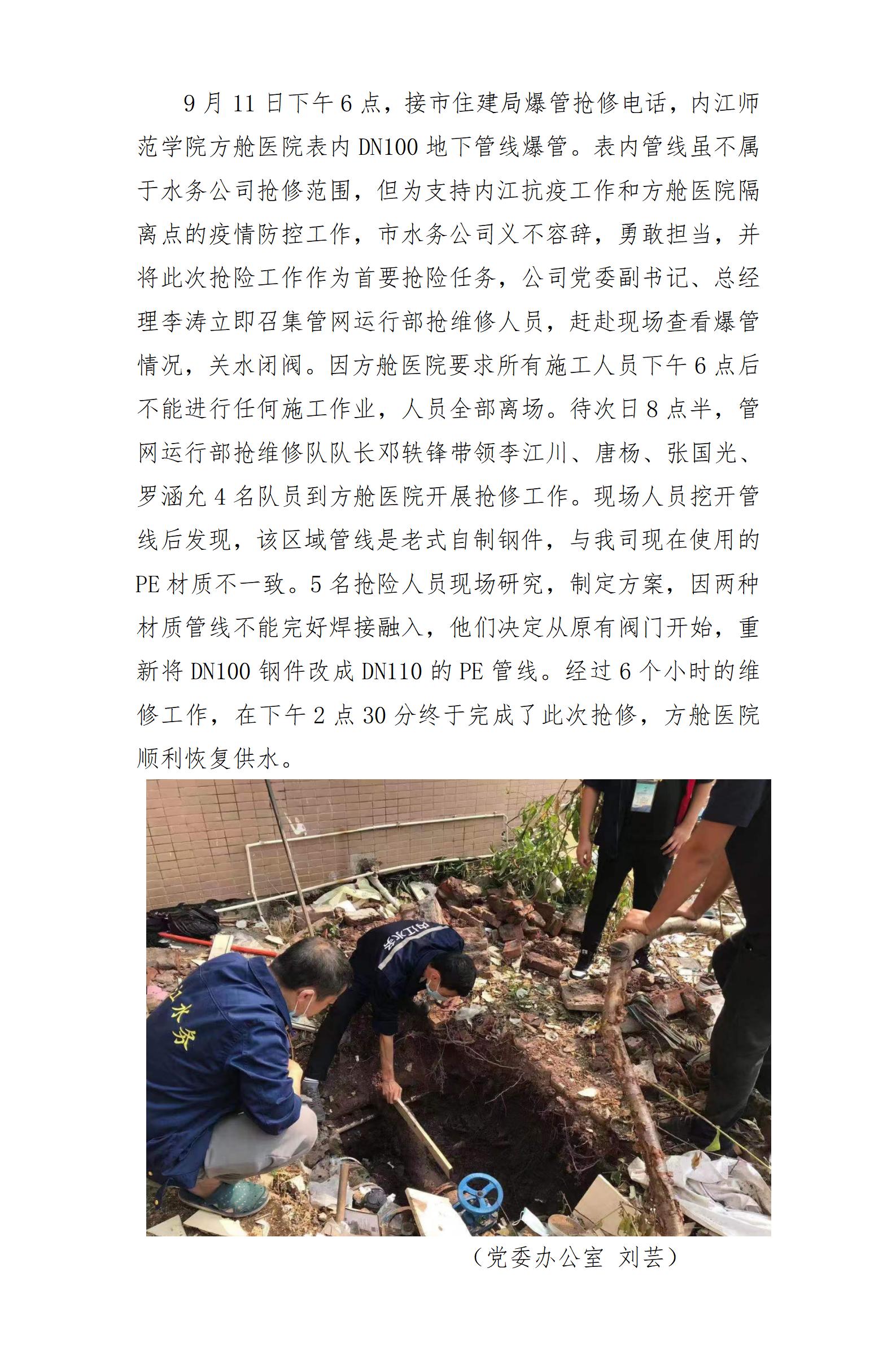 市水务公司支援内江师范学院方舱 医院抢修表内管线