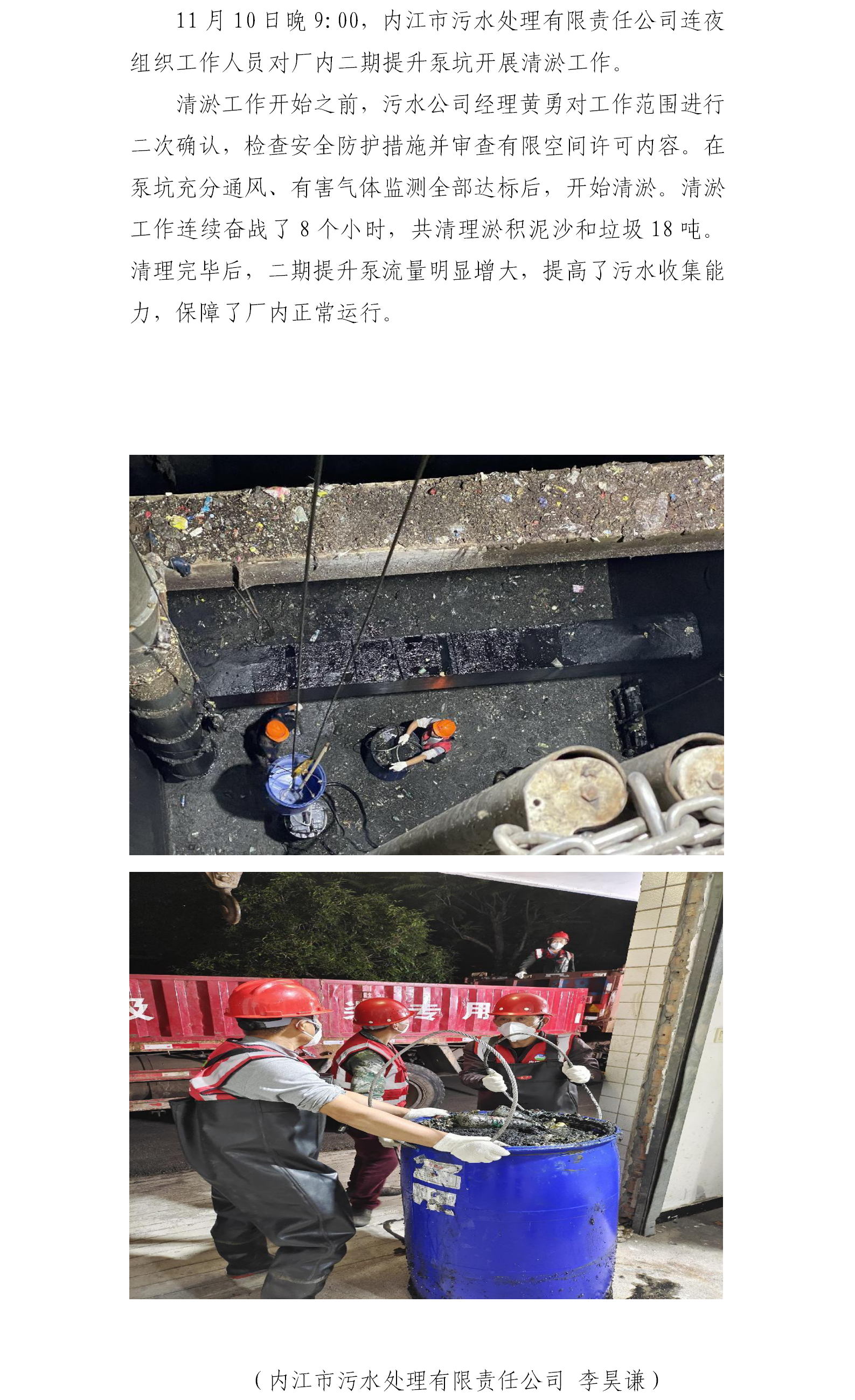 内江市污水处理有限责任公司提升泵坑清淤
