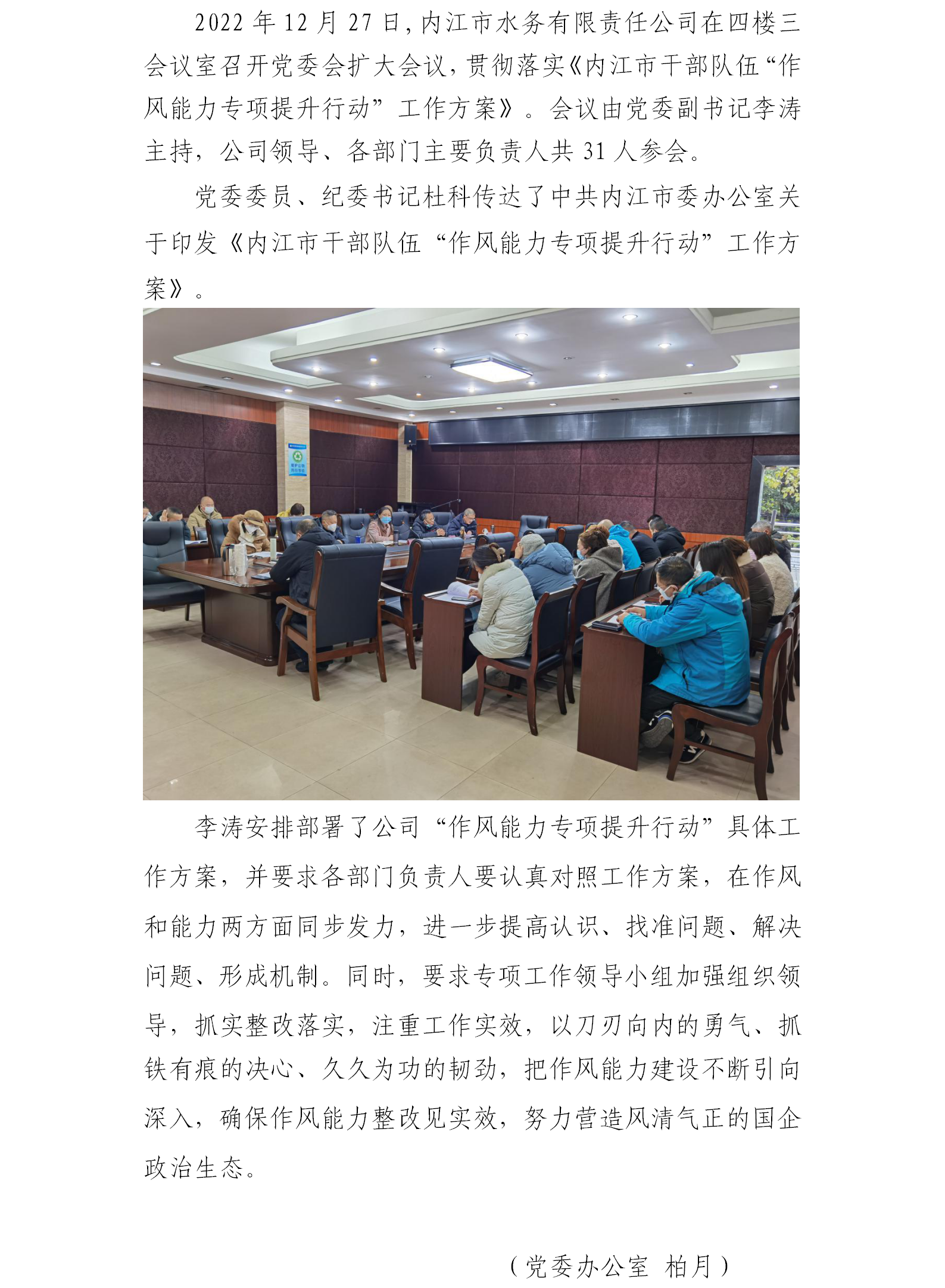 市水务公司召开“作风能力专项提升行动” 专题会议