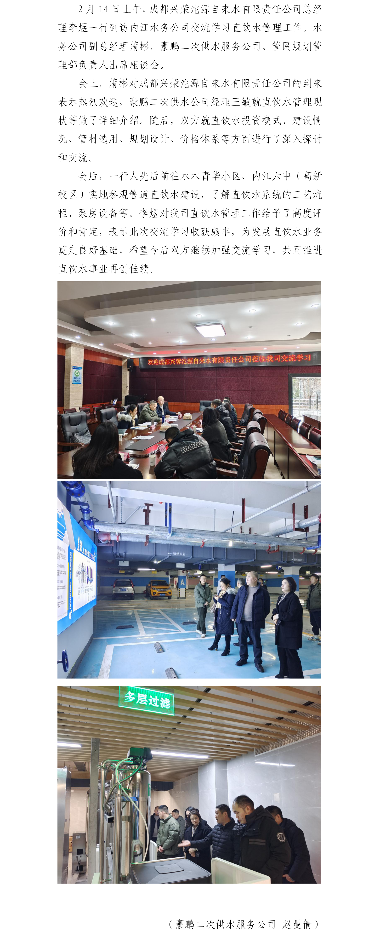 成都兴荣沱源自来水有限责任公司到内江水务交流直饮水管理工作