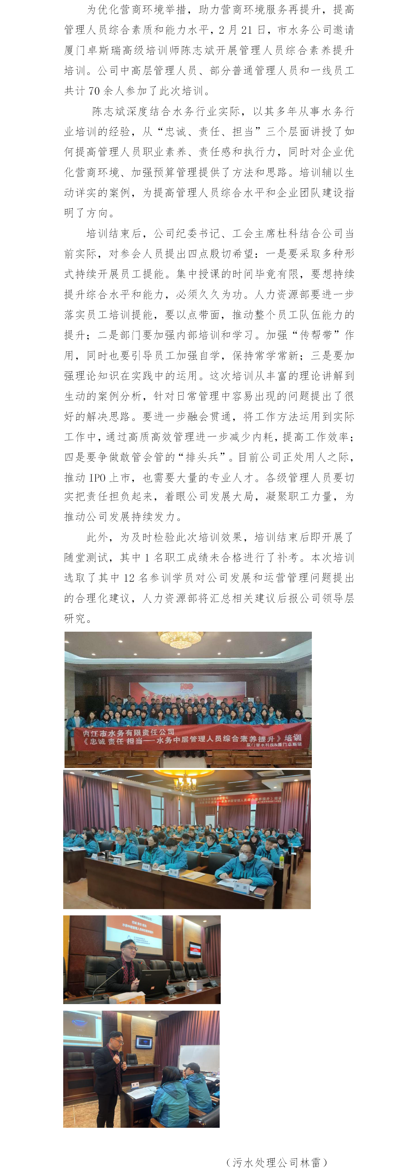 市水务公司开展管理人员综合素养提升培训
