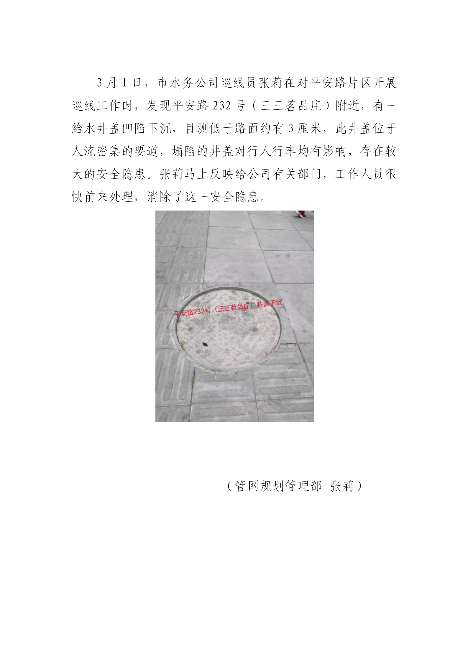 巡线发现井盖下沉安全隐患