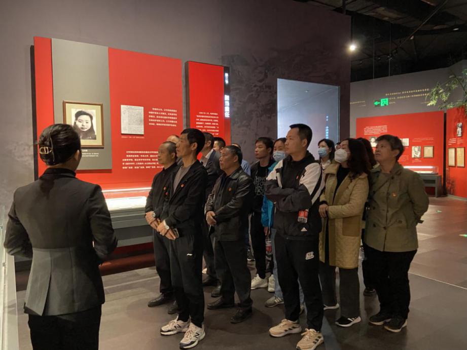 在江姐故居,全体党员怀着崇敬的心情走进江姐生平陈列馆,认真聆听江竹筠烈士的成长历程、所经历的革命斗争以及在狱中的英雄事迹。一件件历史实物和一段段图文解说,生动再现江姐的英勇品格,党员们深受触动,被江姐坚如钢铁的意志和宁死不屈的精神、永不叛党的政治品格深深感动。