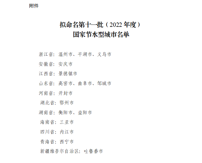 关于拟命名第十一批(2022年度) 国家节水型城市的公示