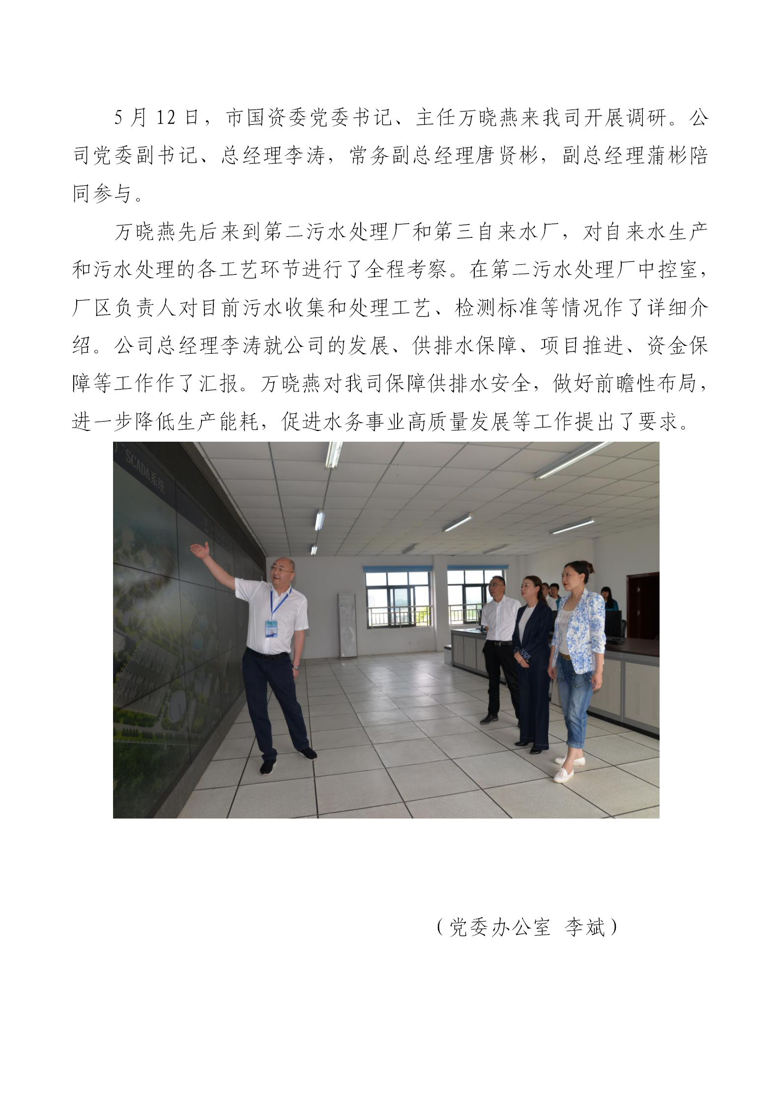 市国资委主任万晓燕调研水务公司