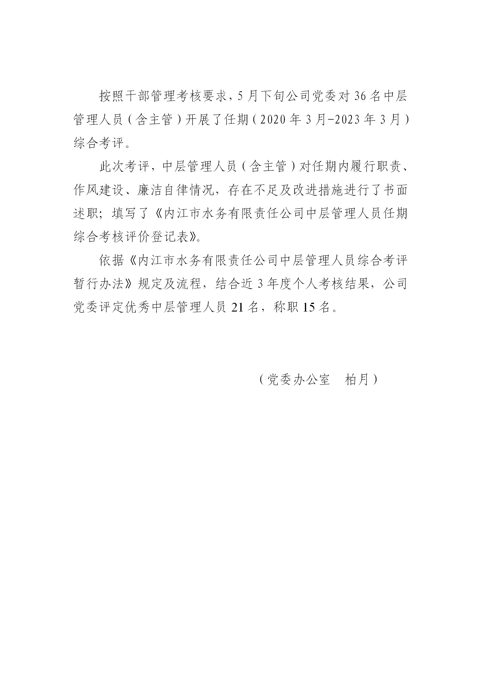 公司党委开展中层管理人员任期综合考评