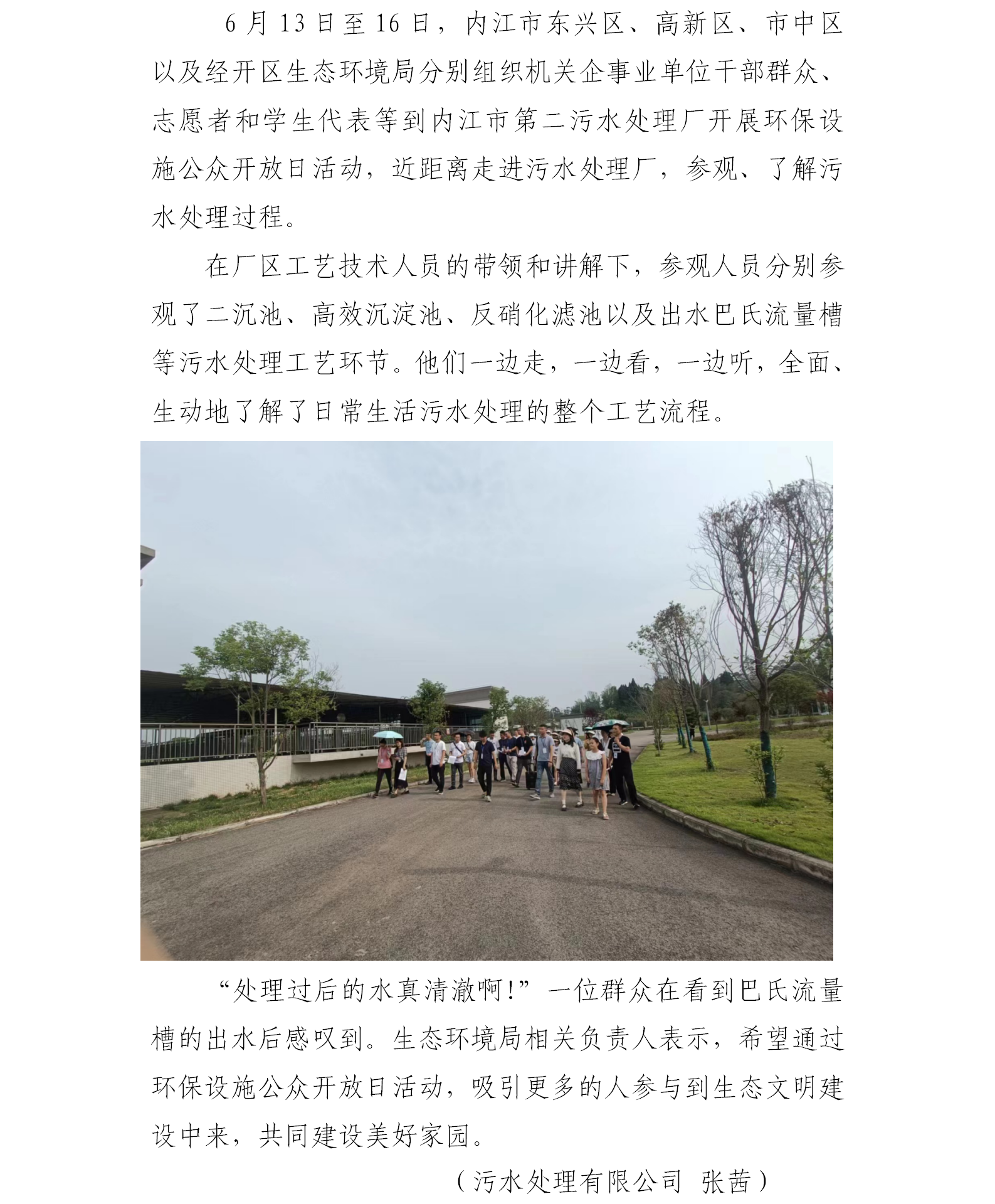 内江市多区生态环境局组织到第二污水处理厂开展环保设施公众开放日活动