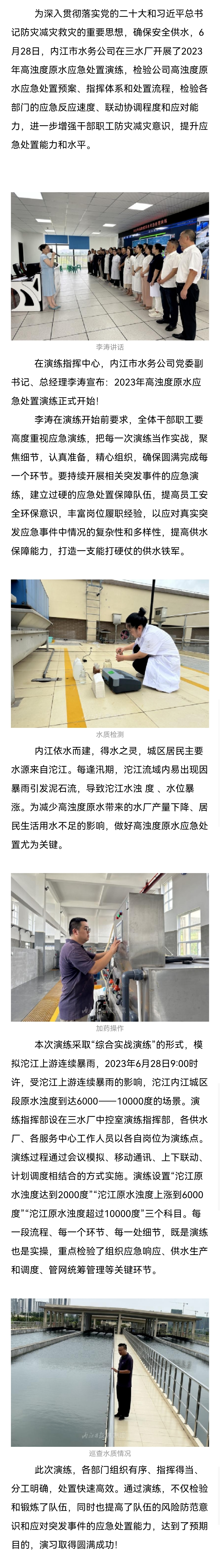 内江市水务公司开展2023年高浊度原水应急处置演练