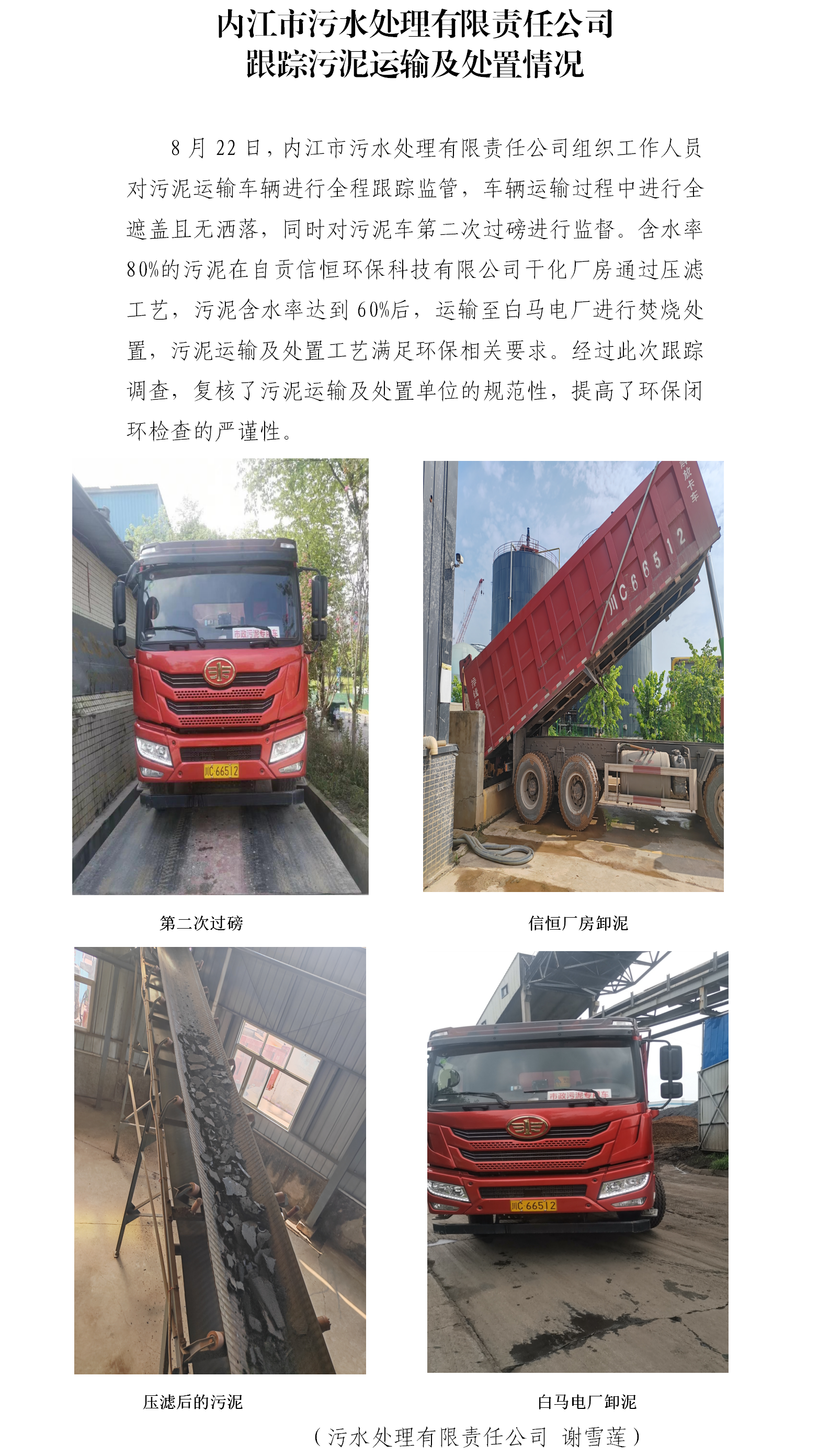 内江市污水处理有限责任公司跟踪污泥运输及处置情况