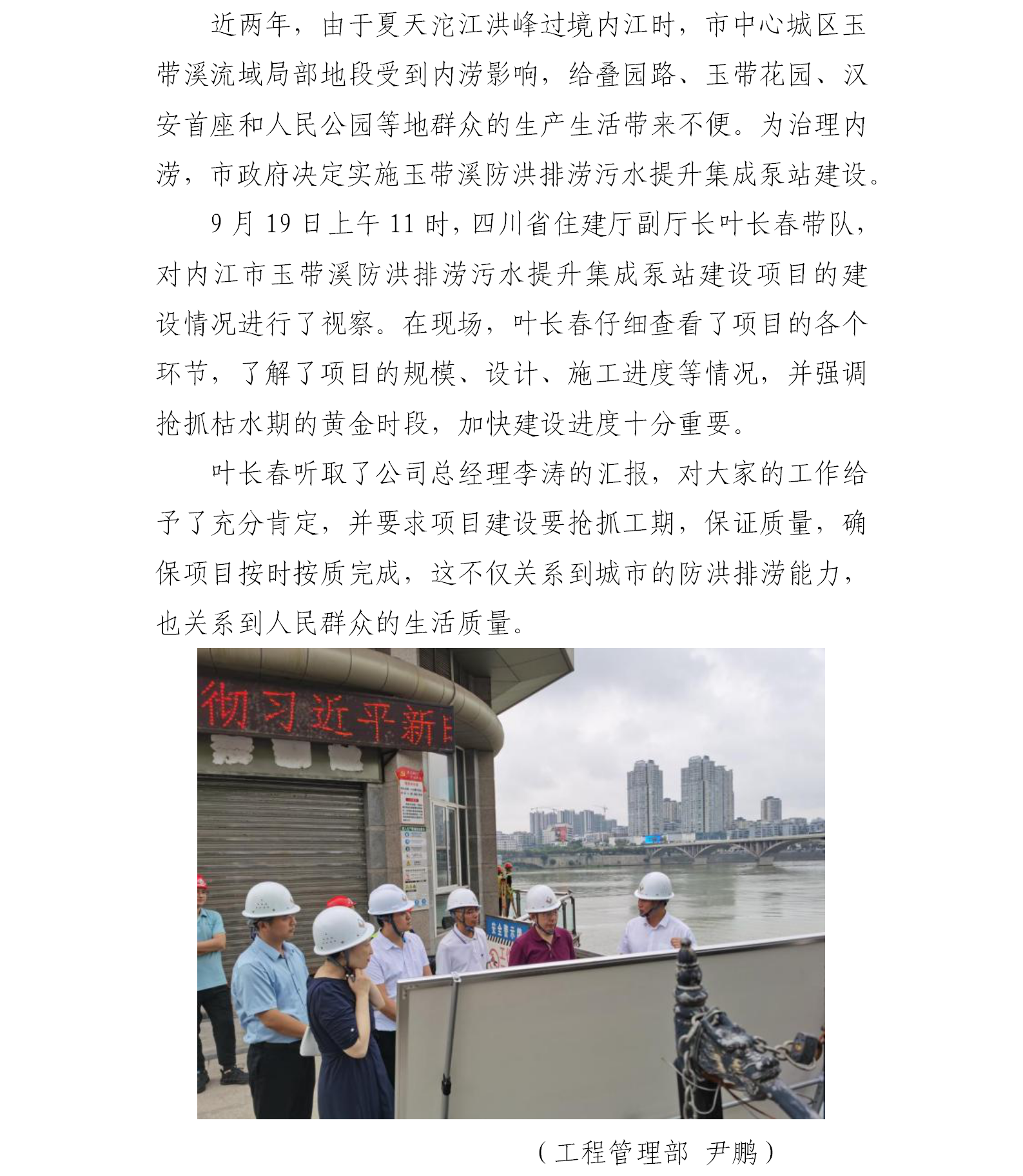 省住建厅副厅长叶长春视察玉带溪泵站项目建设情况