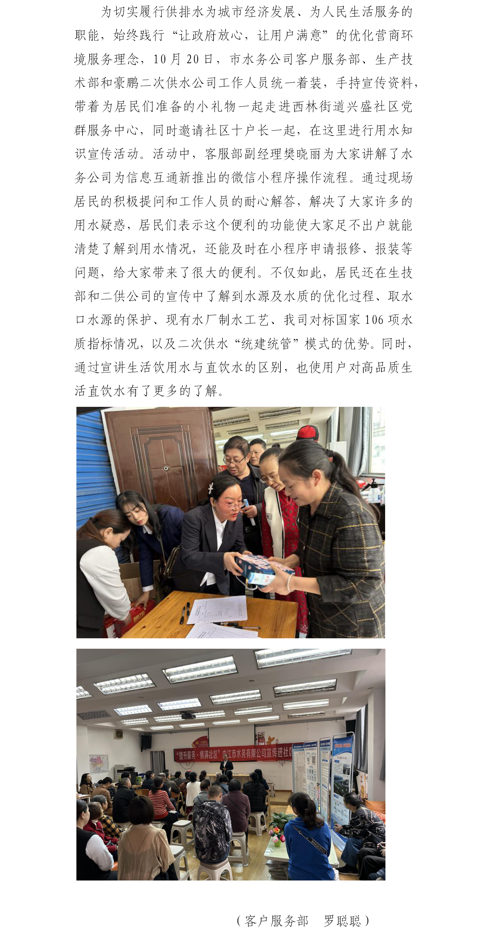 做好用水宣传,服务千家万户