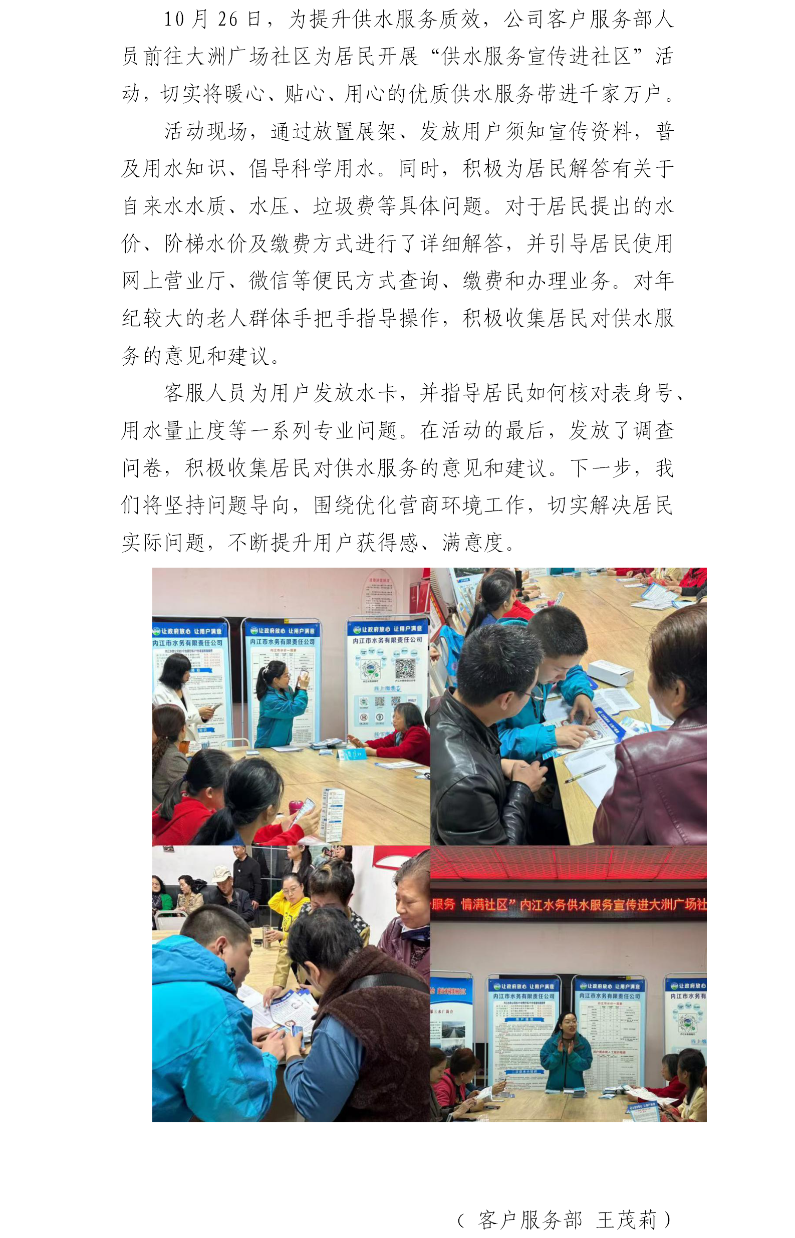 “提升服务 情满社区”内江水务供水服务宣传进社区