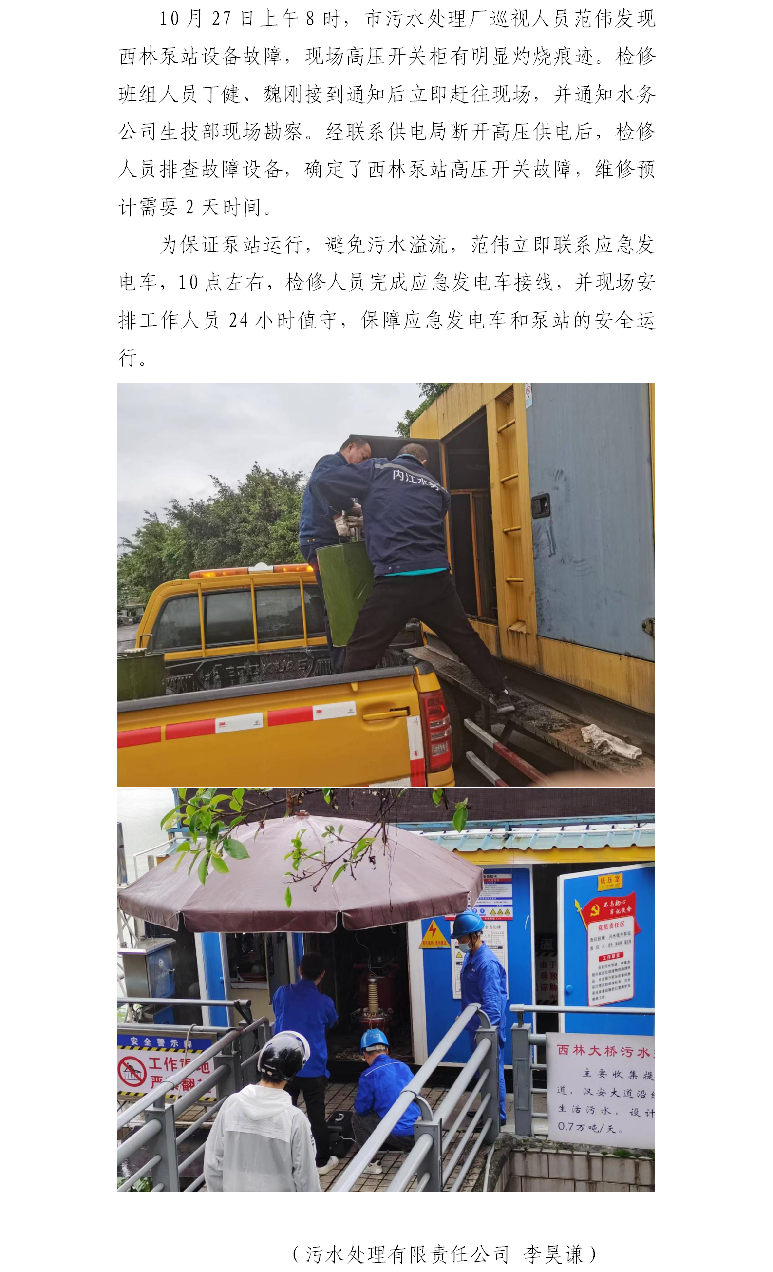 内江市污水处理有限责任公司西林泵站应急抢险处理