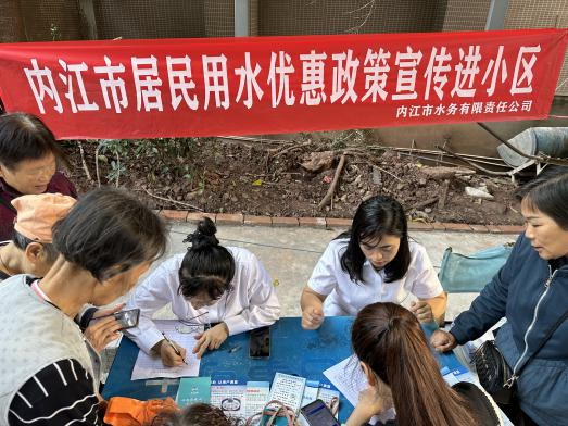 为持续推动优化营商环境工作,落实为民办实事服务举措。10月23日,市水务公司客户服务部组走进莲安公租房、临江花园保障性住房、庙儿山望江苑,开展了“内江市居民用水优惠政策宣传进小区”活动。