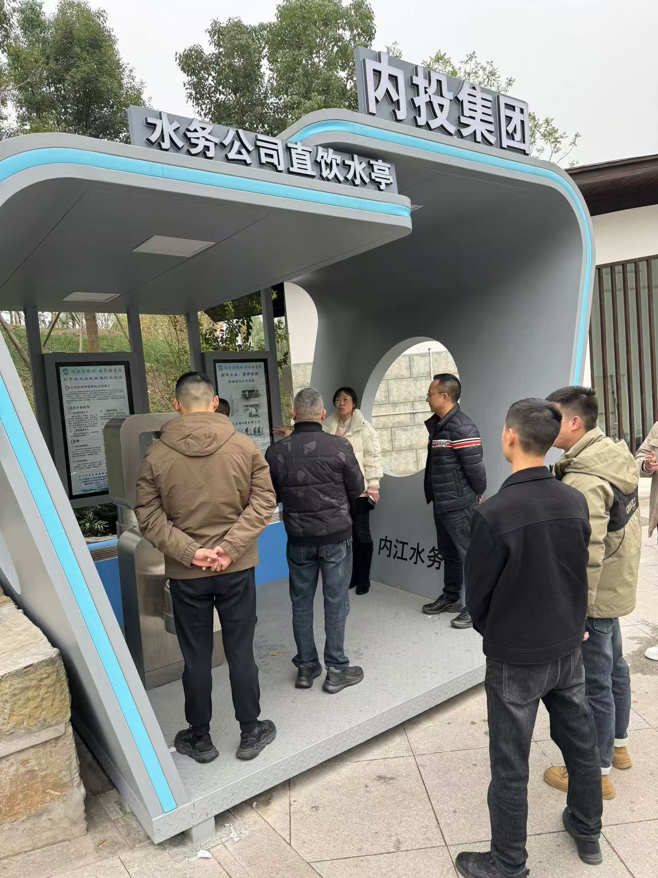 代表团实地考察了五星湿地公园直饮水亭、水木青华小区直饮水设施及内江六中直饮水泵房等示范区域,详细了解内江市直饮水项目实施细节与技术方案。通过现场观摩,南江县代表对直饮水设备性能、运营管理模式及市场前景有了直观认识,并高度评价内江的成功实践。