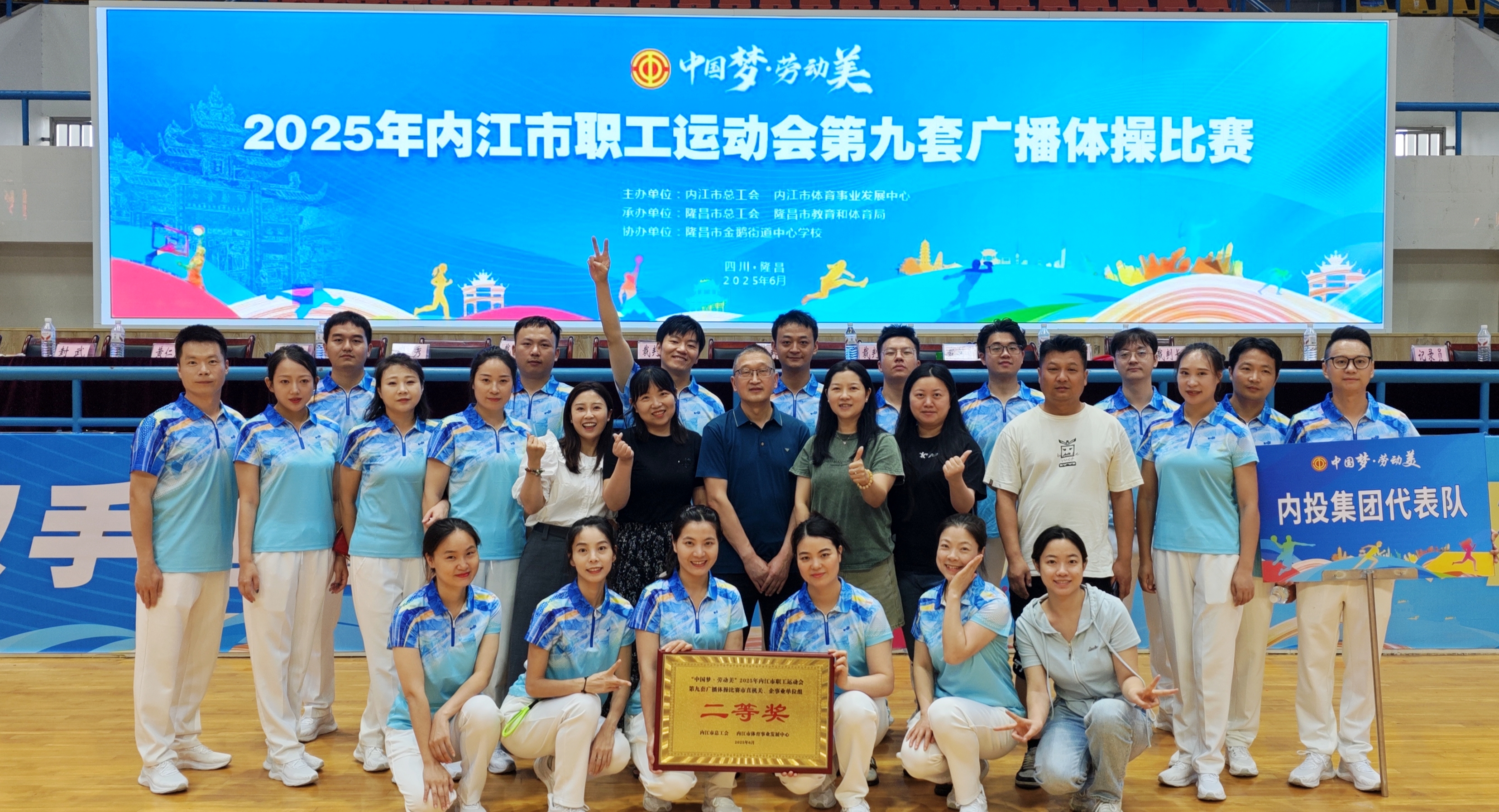 6月21日,2025年内江市职工运动会第九套广播体操比赛在隆昌市体育中心成功举办。由市水务公司和云智科技公司联合组成的内投集团公司代表队凭借优异表现,荣获市直机关、企事业单位组第二名,喜获二等奖。