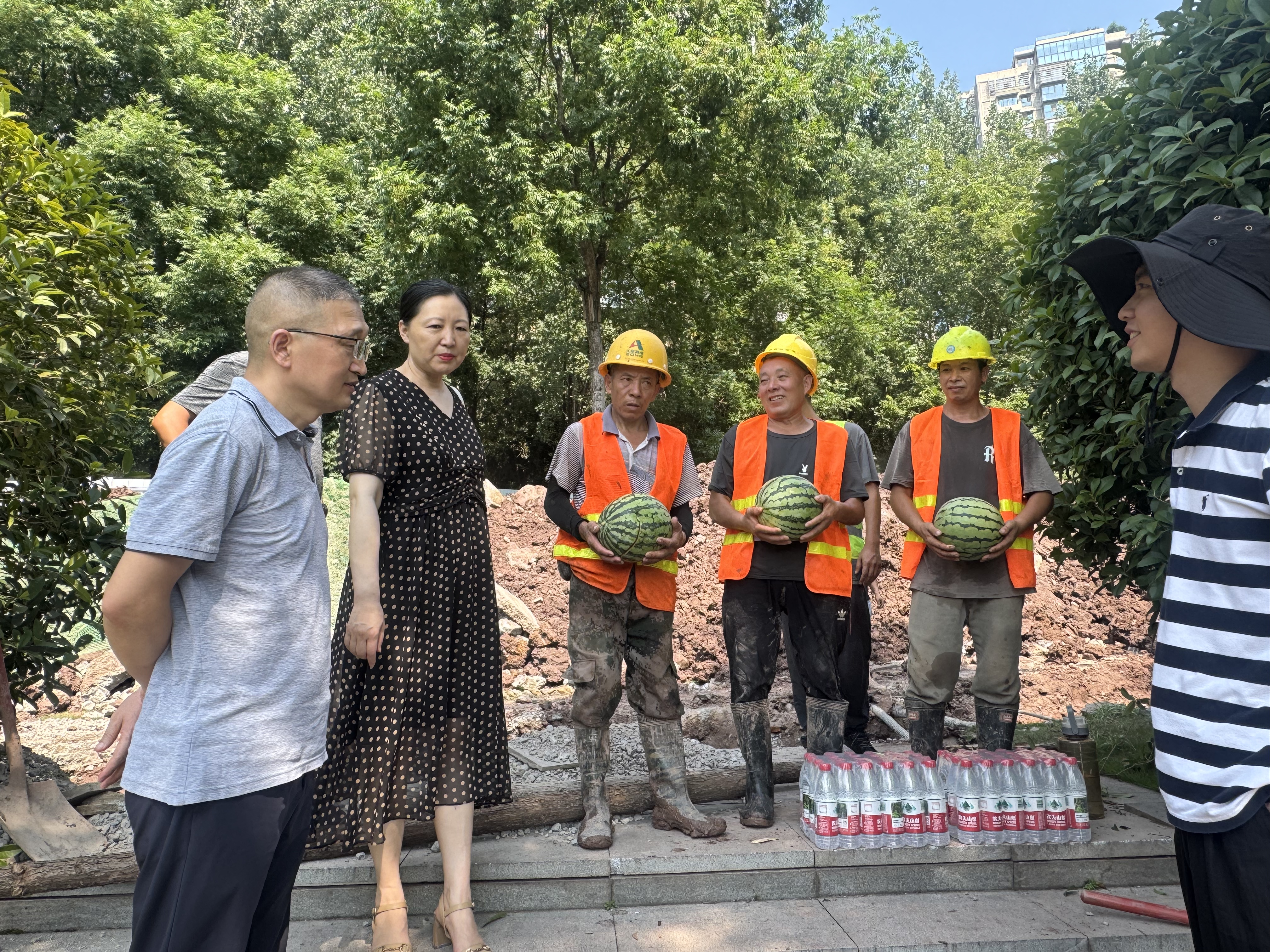 “送清凉”队伍先后来到管网运行部、供水分公司、污水处理厂等厂区、部门及施工现场,为坚守一线的干部职工送去西瓜、矿泉水、藿香正气液等防暑物品。李涛反复叮嘱大家,一定要注意防暑降温,合理安排工作和休息时间,确保身体健康。她强调,公司始终将员工的健康和安全放在首位,特别是在高温天气下,更要加强劳动保护,切实保障员工的合法权益。同时,希望大家继续发扬艰苦奋斗的精神,坚守各自岗位,确保公司各项任务圆满完成。