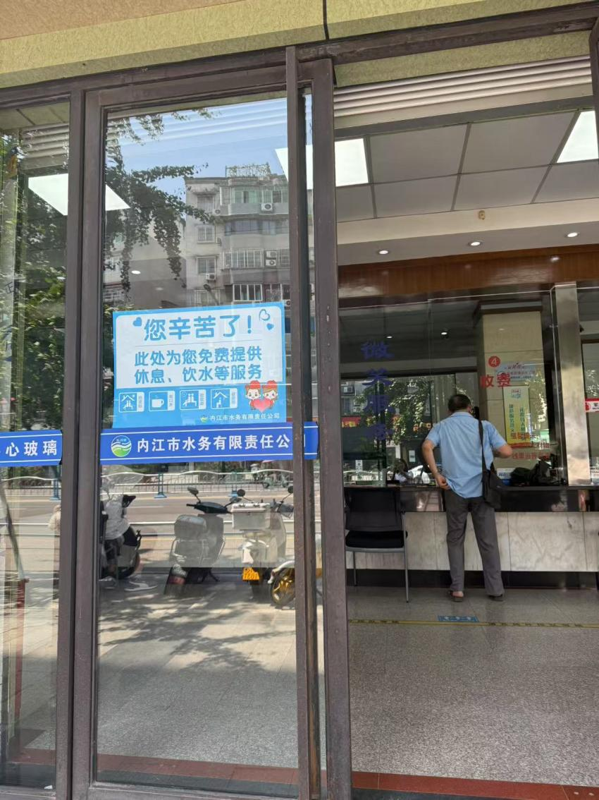 依托公司营业收费大厅,公司第三党支部主动作为,在醒目位置张贴“热可纳凉、渴能饮水、累可歇脚”等标识标语,为外卖小哥、快递员、环卫工人等户外工作者增设“水务清凉角”,免费提供纳凉避暑区域,将营业厅打造成清凉港湾,为他们送去一份“清凉”,传递一份“温情”。