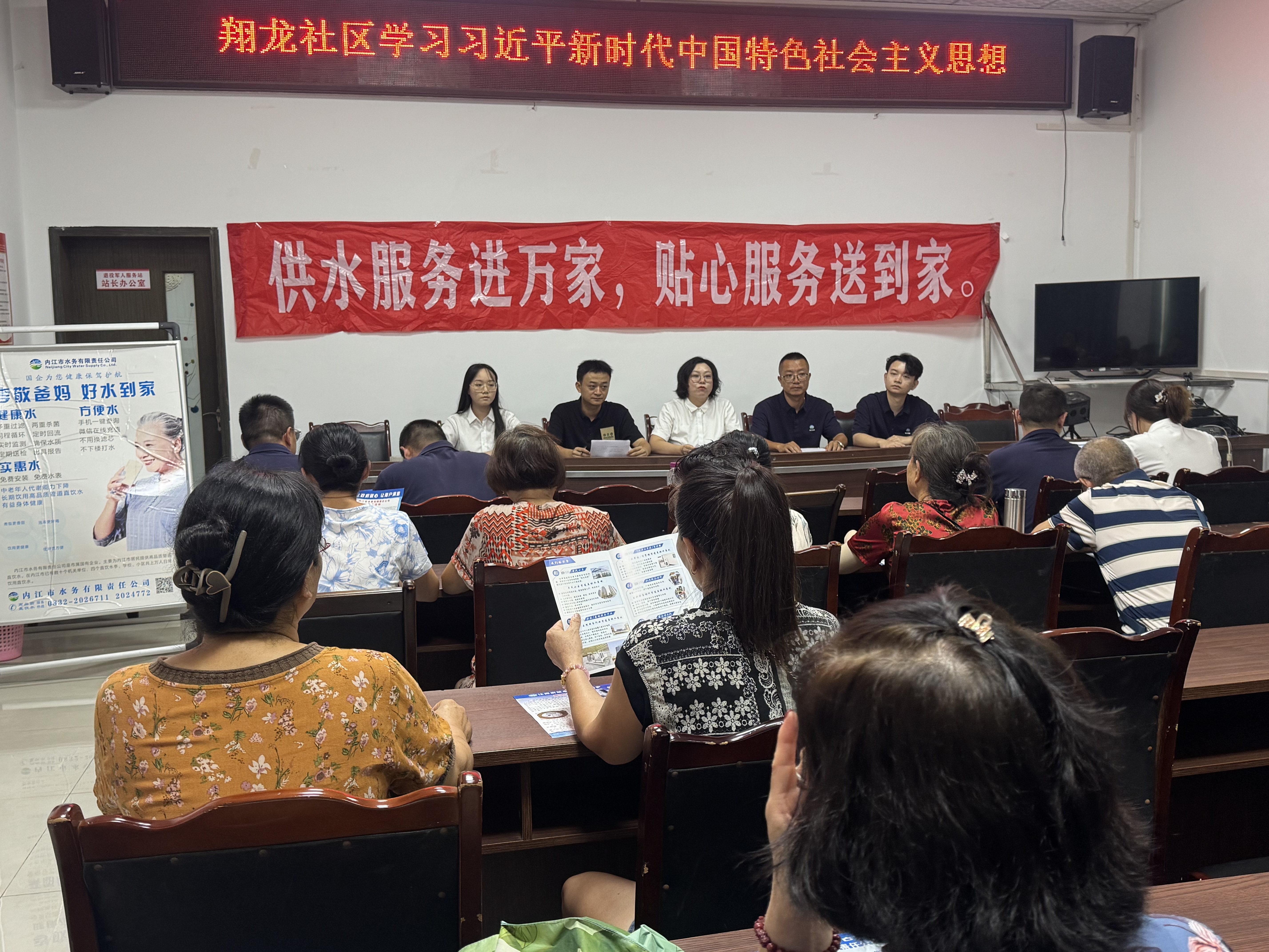 为进一步提升供水服务质量,加强与居民的沟通交流,市水务公司于7月24日、25日组织客户服务部、管网运行部、水表检定站及豪鹏二次供水公司的工作人员,走进星桥街、羊子岩和翔龙社区,开展了以“供水服务进万家,贴心服务送到家”为主题的供水服务宣传活动。
