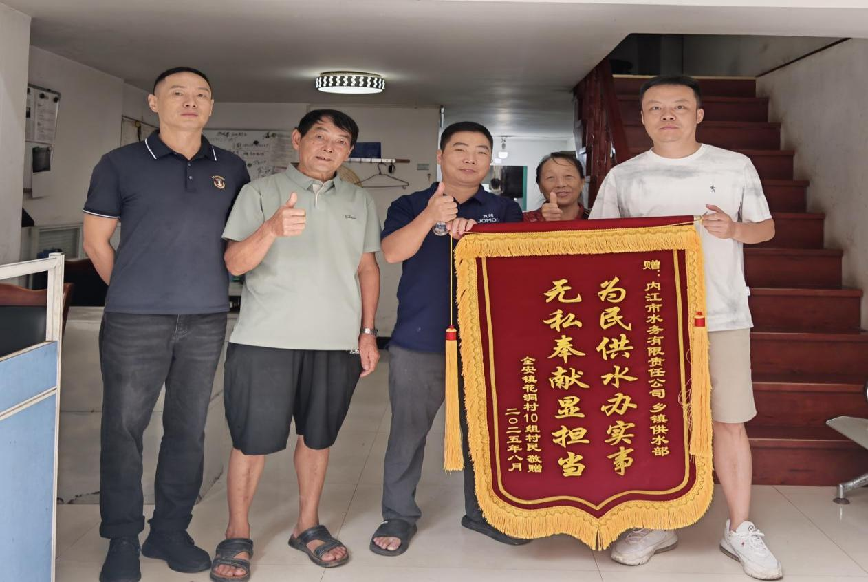 8月25日,花洞村五组村民代表将一面印有“为民供水办实事 无私奉献显担当”的锦旗赠予乡镇供水部,以此表达对部门高效、贴心服务的由衷感激。