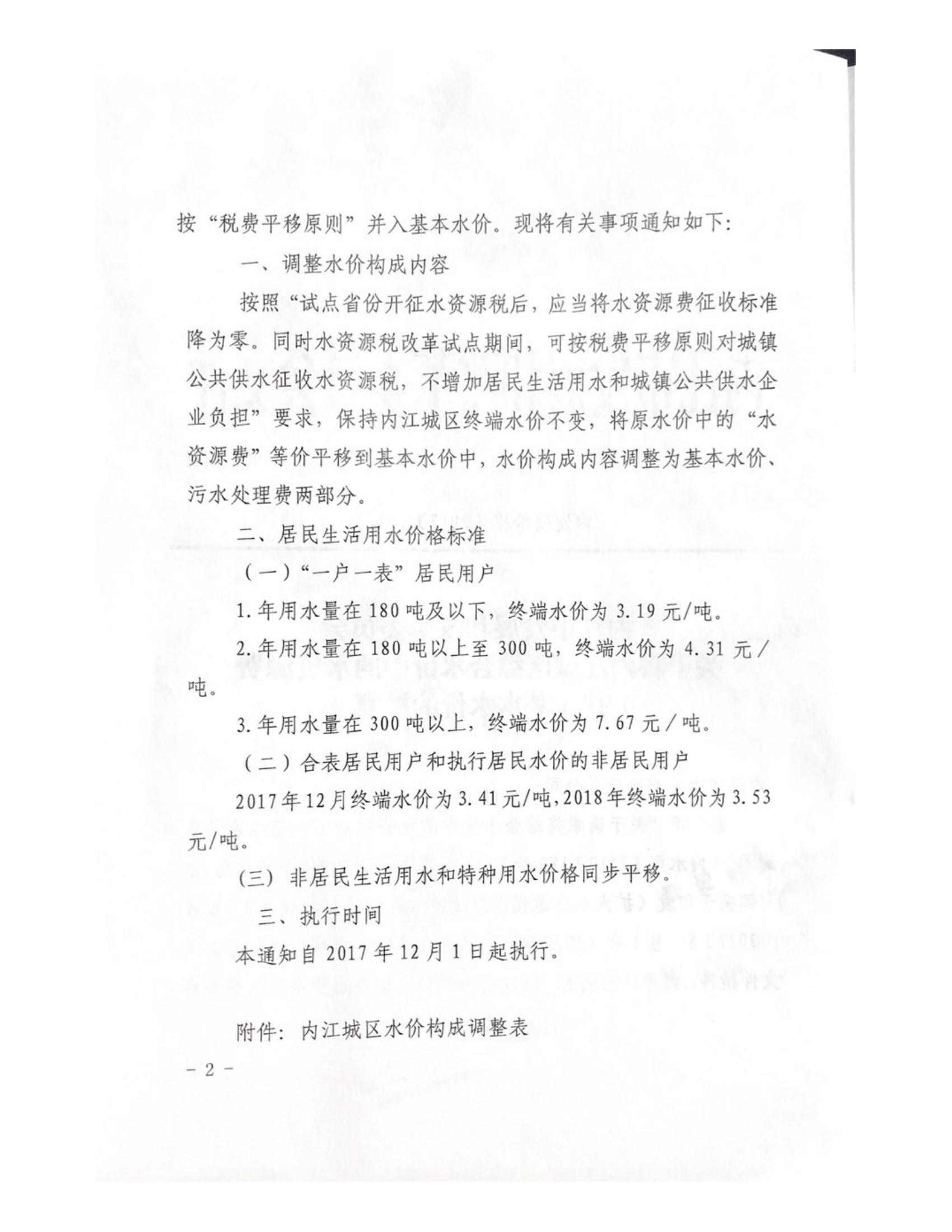 内江市发展和改革委员会关于将内江城区综合水价中的水资源费并入基本水价的批复